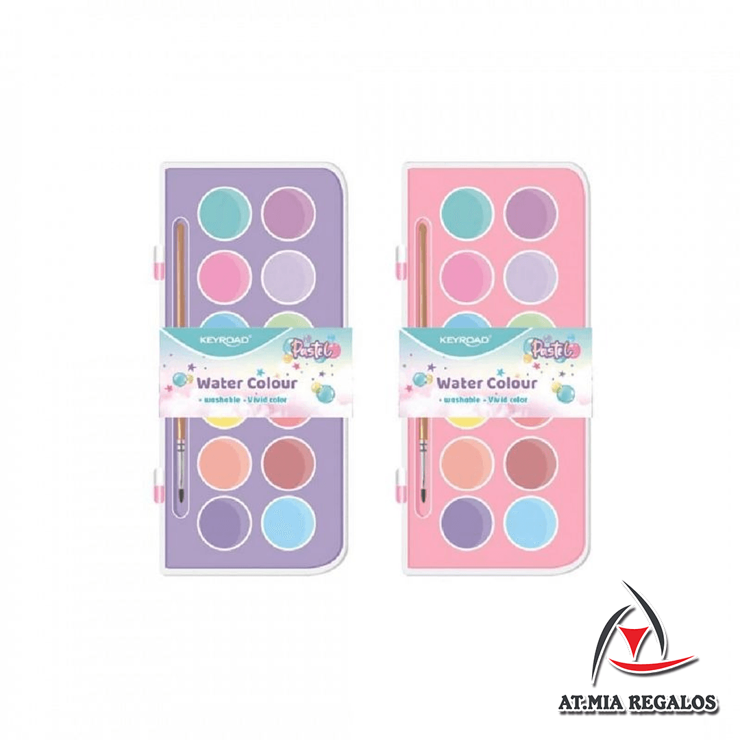 Acuarelas de Colores Pastel +Pincel Keyroad x12