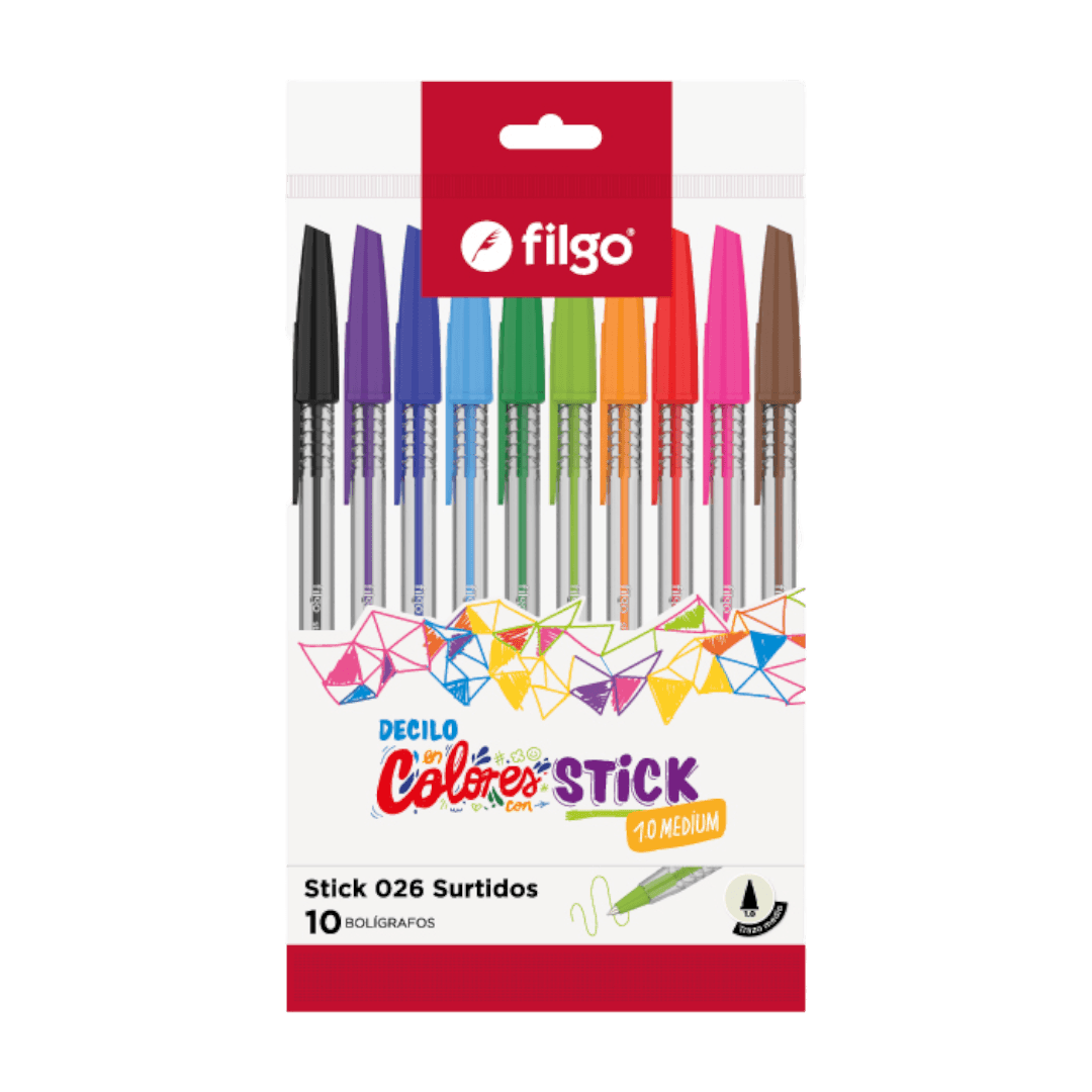 Bolígrafos Lapiceras de Colores Filgo Stick 026 x10