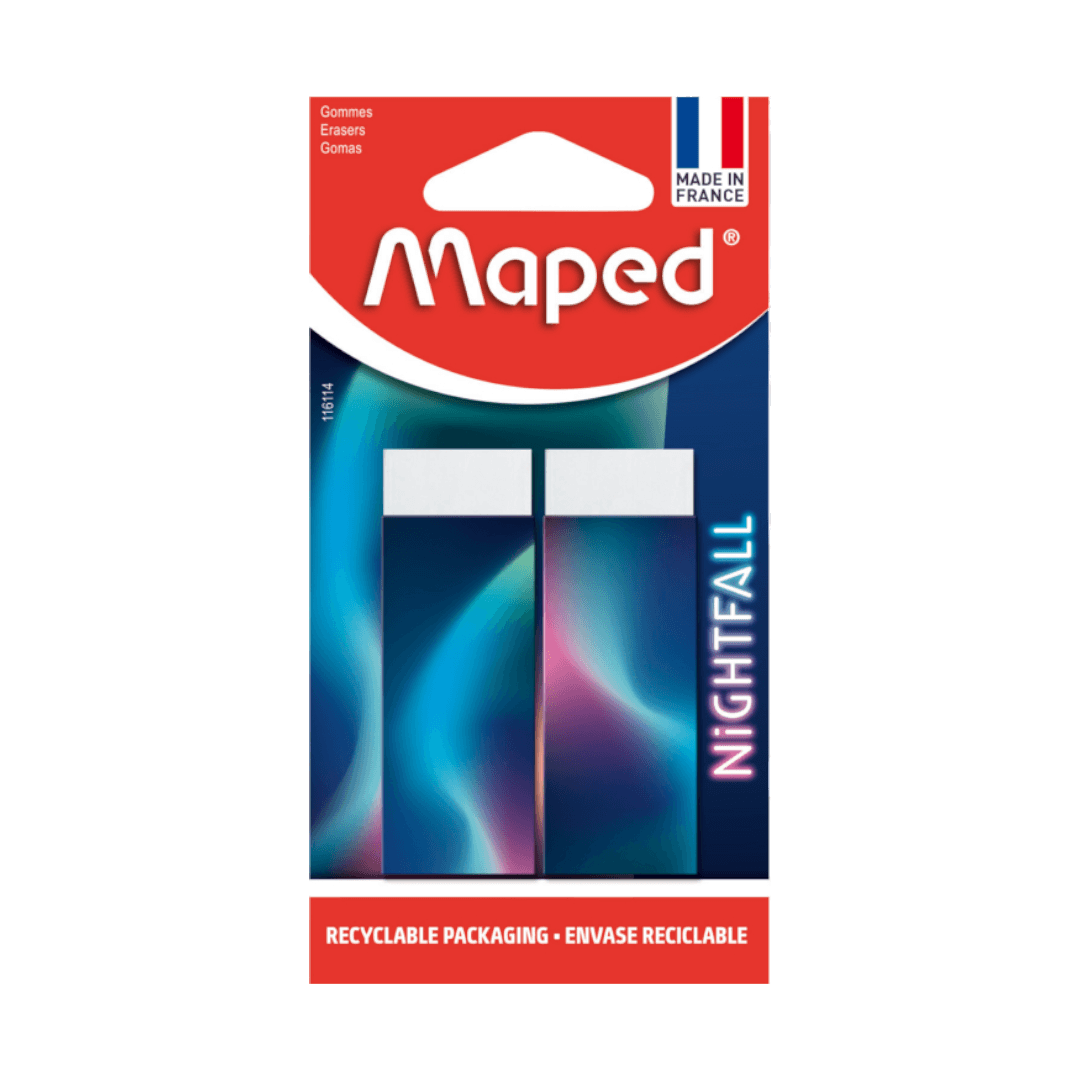 La goma de borrar escolar Maped Nightfall Teens es un producto de alta calidad fabricado en Francia, diseñado específicamente para satisfacer las necesidades de estudiantes y profesionales.