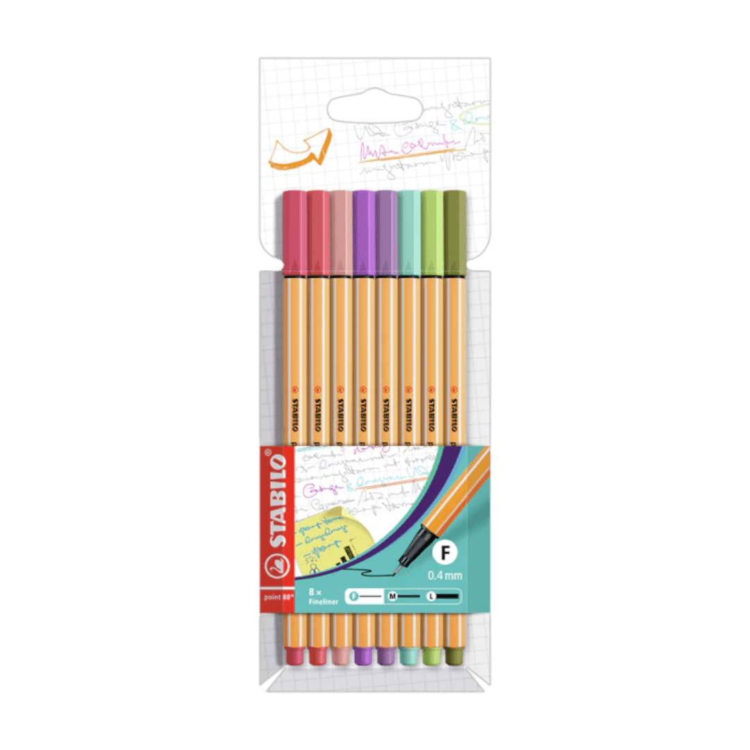 Este set incluye 8 microfibras en tonos pastel, ideales para destacar y escribir con estilo. Cada microfibra tiene una punta fina de 0.4 mm, perfecta para trazos delicados y detallados.