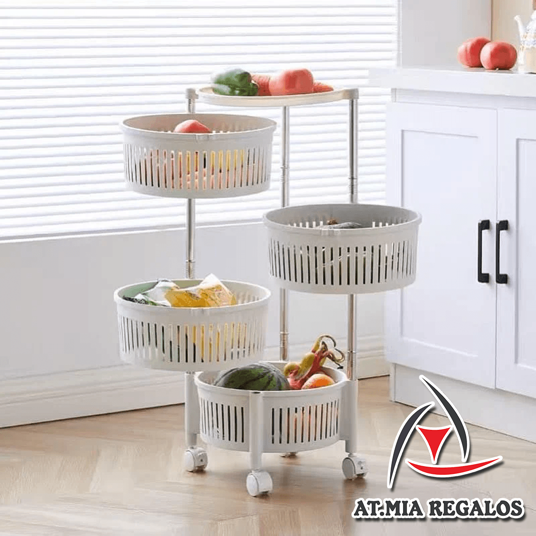 Diseño de cesta giratoria de 4 niveles y malla hueca: el diseño de cesta de frutas giratoria de 4 niveles te permite colocar o llevar artículos desde cualquier dirección. El diseño de rejilla de malla permite que el aire circule, asegurando que las frutas y verduras estén ventiladas y no tengan olor peculiar.