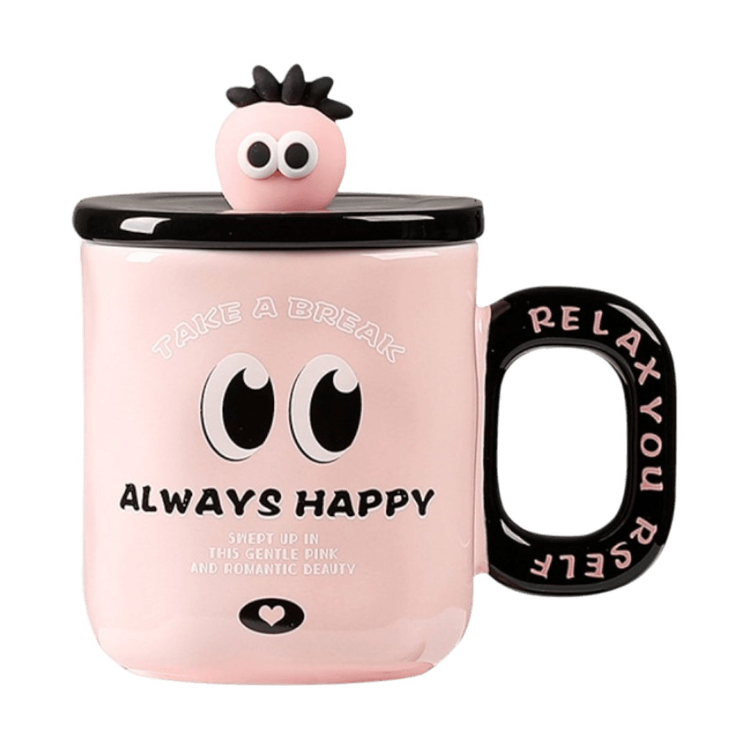 Taza de Cerámica Con Tapa + Cuchara Diseño Relax You 360ml