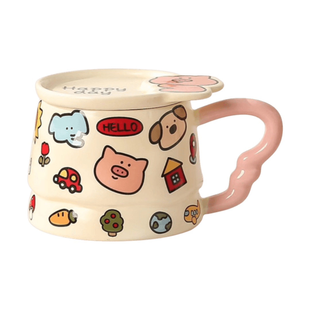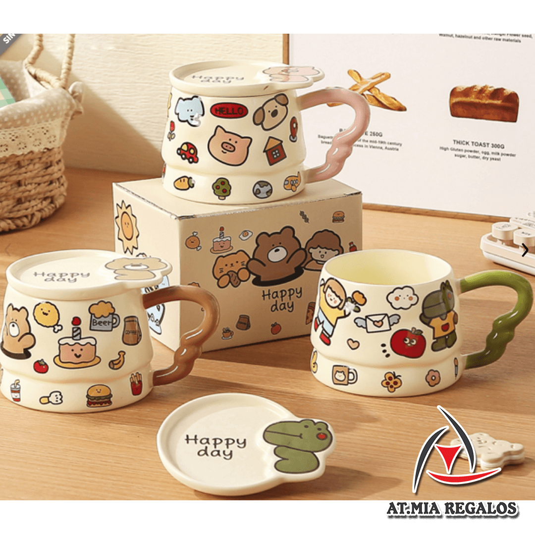 Taza de Cerámica Con Tapa Happy Day 400ml