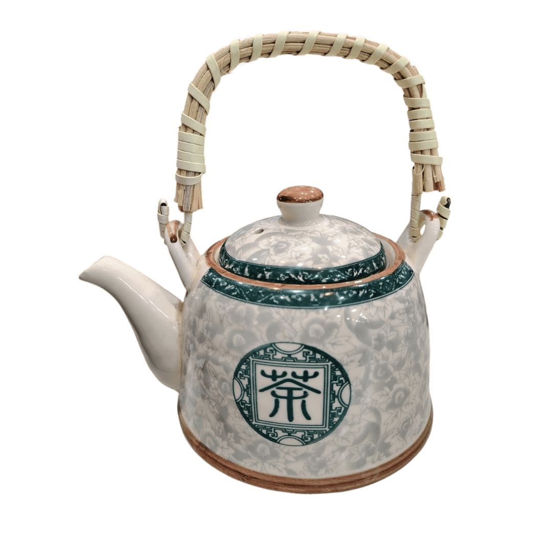 Tetera de Porcelana 650ml c/Filtro Infusor Diseño Oriental Verde