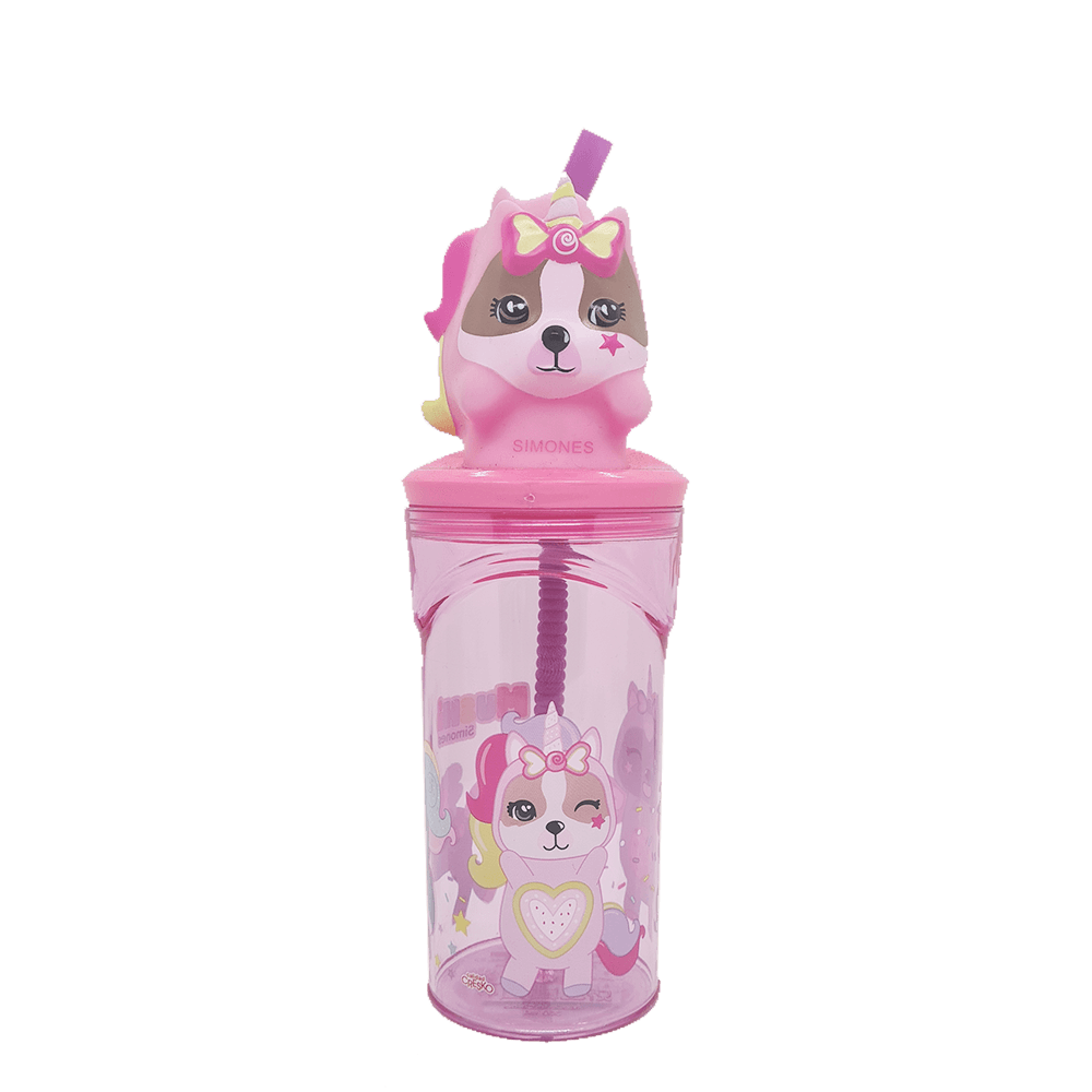 Divertido y original bote reutilizable, con el que los pequeños podran estar siempre hidratados, gracias a su tapa y pajita flexible.